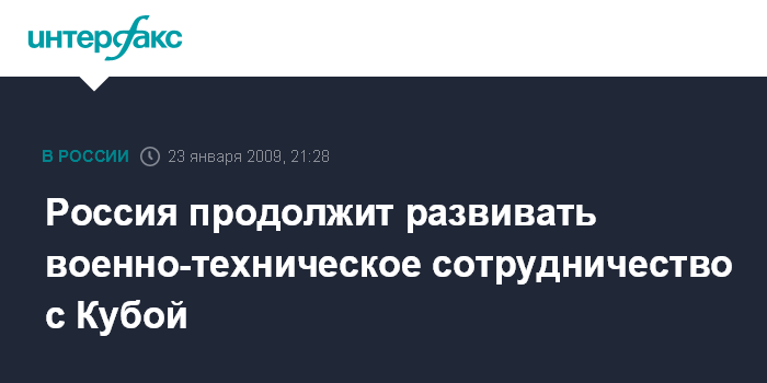 Москва. 23 января. INTERFAX.RU - Россия намерена и дальше осуществлять военно-техническое сотрудничество с Кубой, и делает это в соответствии с международно-правовыми нормами, заявил вице-премьер РФ Игорь Сечин.