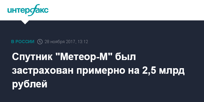 Спутник "Метеор-М" был застрахован примерно на 2,5 млрд рублей
