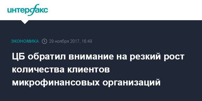 Москва. 29 ноября. INTERFAX.RU - ЦБ РФ обратил внимание на резкий рост количества клиентов микрофинансовых организаций (МФО), изучает эту тенденцию, сообщил зампред Банка России Владимир Чистюхин.