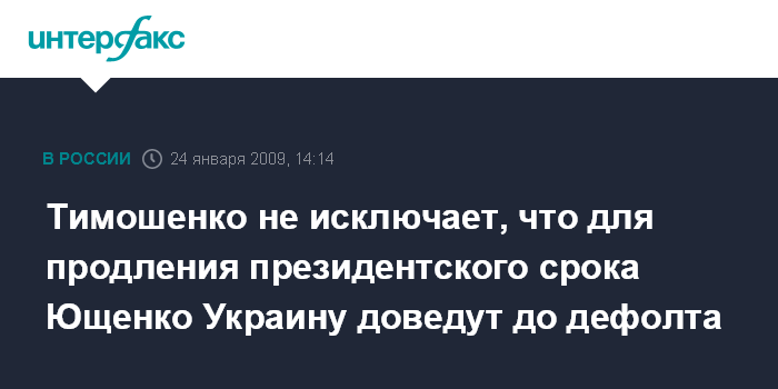 Тимошенко не исключает, что для продления президентского срока Ющенко Украину доведут до дефолта