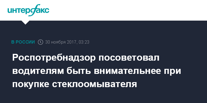 "В связи с приближением сезона устойчиво отрицательных температур воздуха Федеральная служба по надзору в сфере защиты прав потребителей и благополучия человека рекомендует автомобилистам внимательно отнестись к выбору стеклоомывающей жидкости",- говорится в сообщении ведомства.