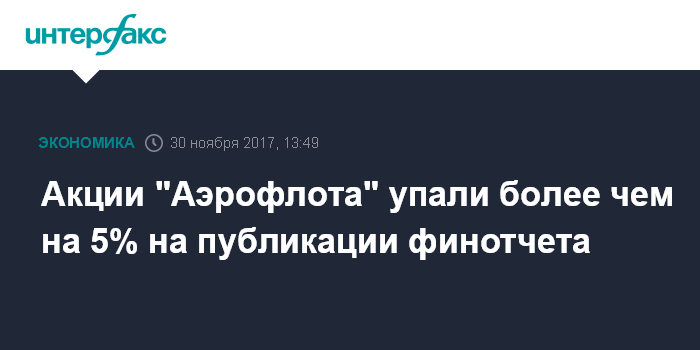Москва. 30 ноября. INTERFAX.RU - Акции "Аэрофлота" упали днем в четверг после выхода отчета авиаперевозчика за девять месяцев по МСФО, не оправдавшего ожиданий экспертов.