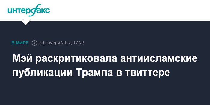 Мэй раскритиковала антиисламские публикации Трампа в твиттере