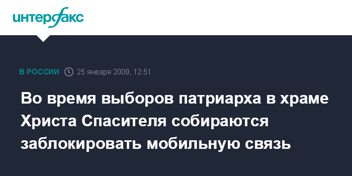 Москва. 25 января. INTERFAX.RU - В период избрания патриарха Московского и всея Руси в храме Христа Спасителя предполагается установить "глушилки" сотовых телефонов.