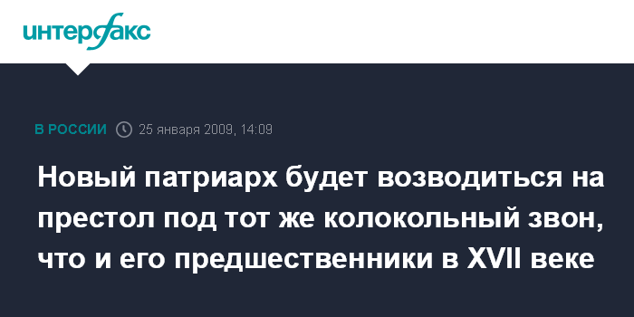 Новый патриарх будет возводиться на престол под тот же колокольный звон, что и его предшественники в XVII веке
