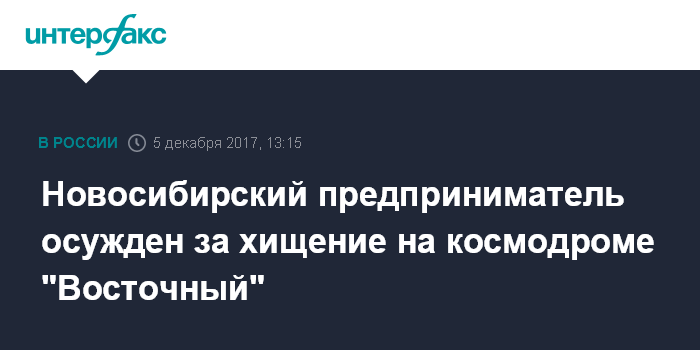 Новосибирский предприниматель осужден за хищение на космодроме "Восточный"