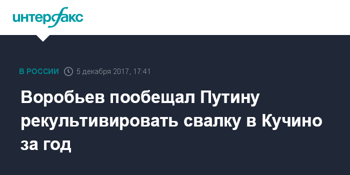 Москва. 5 декабря. INTERFAX.RU - Закрытый мусорный полигон в подмосковном Кучино будет рекультивирован в течение года, заявил губернатор Московской области Андрей Воробьев.