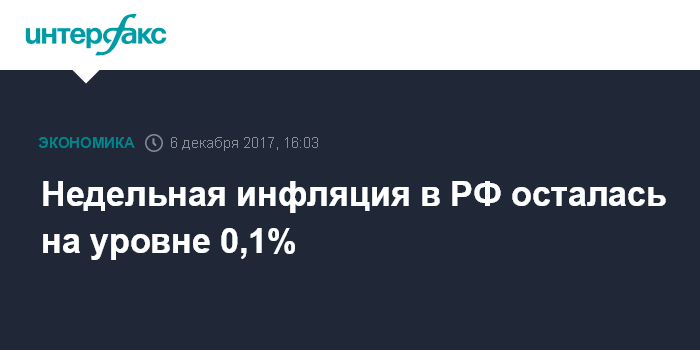 Минэкономразвития РФ в начале ноября понизило интервал прогноза по инфляции в РФ на 2017 год до 2,5-2,8% с 2,7-3,2% после выхода октябрьской статистики. На прошлой неделе директор департамента макроэкономического прогнозирования Минэкономразвития Полина Бадасен заявила, что министерство ожидает инфляцию по итогам года вблизи 2,5%.