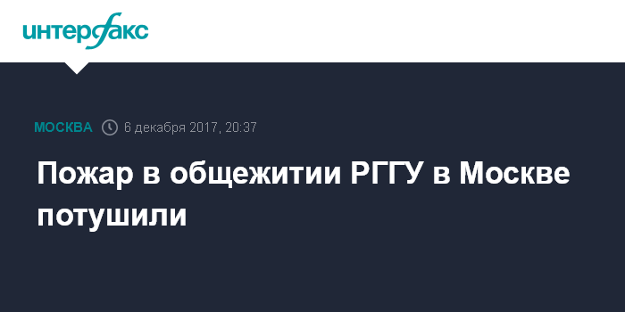 Москва. 6 декабря. INTERFAX.RU - Пожарные ликвидировали возгорание в общежитии Российского государственного гуманитарного университета (РГГУ) в Москве.