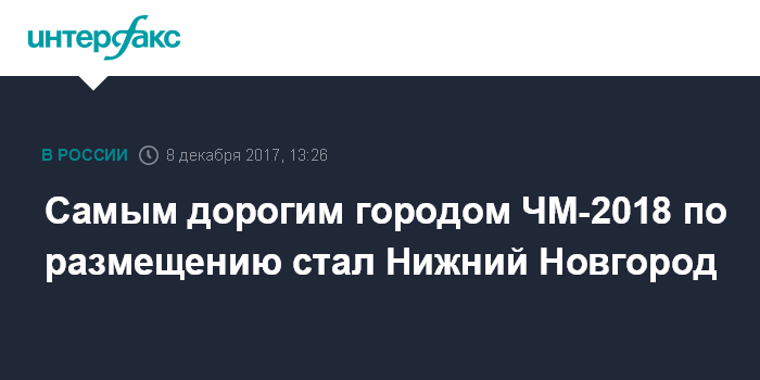 Москва. 8 декабря. INTERFAX.RU - Нижний Новгород обогнал Москву и Петербург по цене проживания по итогам 2017 года в списке городов чемпионата мира по футболу.