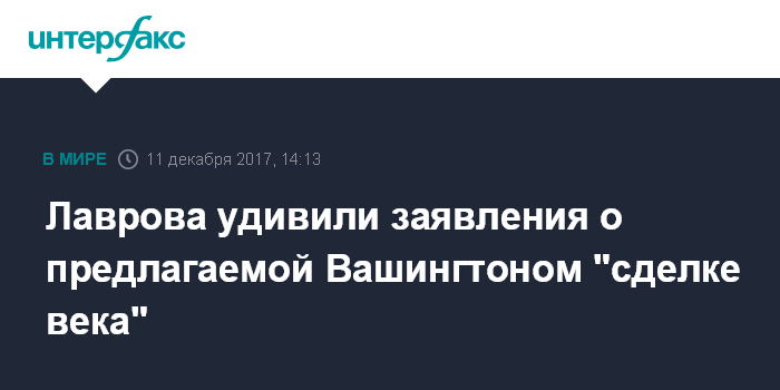 Лаврова удивили заявления о предлагаемой Вашингтоном "сделке века"