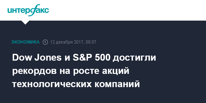 Москва. 12 декабря. INTERFAX.RU - Американские фондовые индексы Dow Jones Industrial Average и Standard & Poor's 500 завершили торги в понедельник на рекордных отметках благодаря повышению котировок акций телекоммуникационных и высокотехнологических компаний.