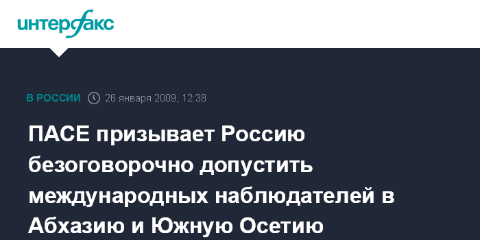 ПАСЕ призывает Россию безоговорочно допустить международных наблюдателей в Абхазию и Южную Осетию