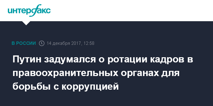 Москва. 14 декабря. INTERFAX.RU - Президент РФ Владимир Путин допустил возможность введения ротации кадров в правоохранительных органах для борьбы с коррупцией.