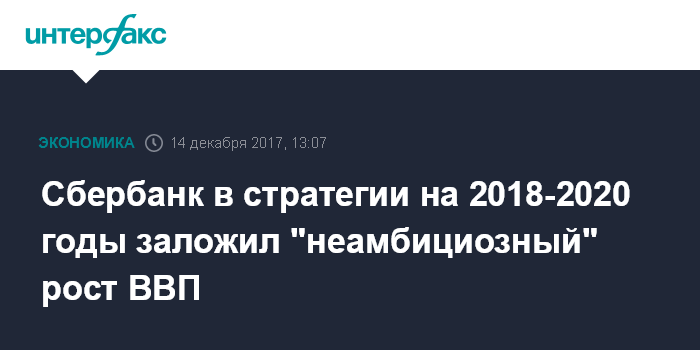 Сбербанк в стратегии на 2018-2020 годы заложил "неамбициозный" рост ВВП