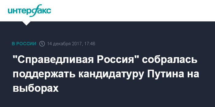 Ранее лидер партии "Справедливая Россия" и ее фракции в Госдуме Сергей Миронов заявил, что эсэры "с облегчением вздохнули", узнав о готовности Владимира Путина участвовать в выборах президента в марте будущего года.