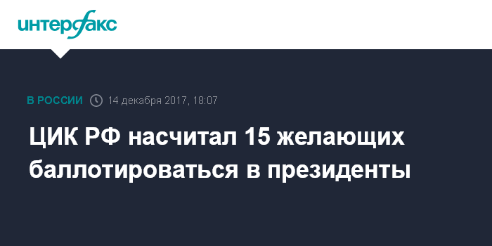 ЦИК РФ насчитал 15 желающих баллотироваться в президенты