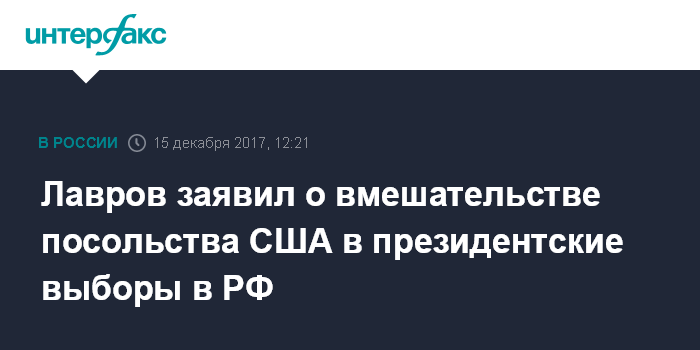 Лавров заявил о вмешательстве посольства США в президентские выборы в РФ