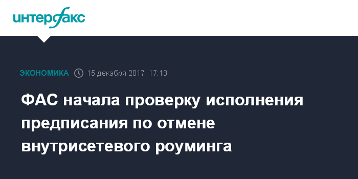 Ранее в ходе дискуссии между ФАС, операторами и Минкомсвязи стороны договорились о полной отмене внутрисетевого роуминга в течение первой половины 2018 года. При этом все необходимые нормативные документы Минкомсвязи и ФАС обязались подготовить до конца текущего года, взимание дополнительной платы за связь при перемещении из одного региона РФ в другой должно прекратиться с января 2018 года, остальные полгода уйдут у операторов на решение оставшихся технических вопросов.