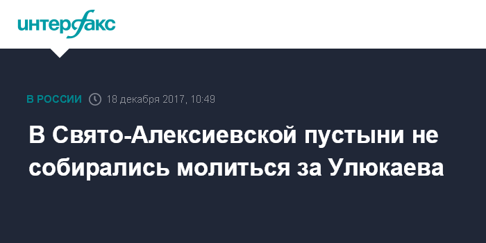 Москва. 18 декабря. INTERFAX.RU - Настоятель Свято-Алексиевской пустыни иеромонах Петр (Василенко) опроверг сообщения о том, что в его монастыре собираются молиться за бывшего министра экономического развития Алексея Улюкаева, осужденного на восемь лет колонии строгого режима за коррупцию.