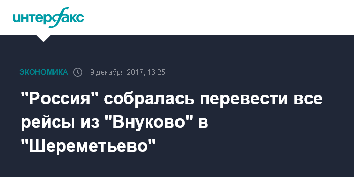 "Россия" собралась перевести все рейсы из "Внуково" в "Шереметьево"