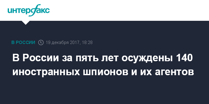 В России за пять лет осуждены 140 иностранных шпионов и их агентов