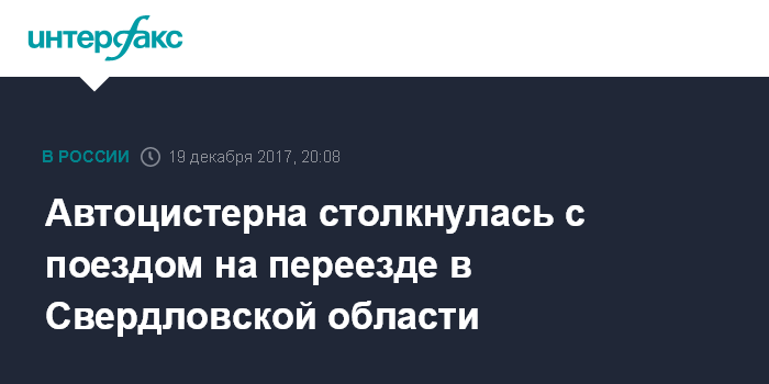 Москва. 19 декабря. INTERFAX.RU - Автоцистерна столкнулась с электропоездом во вторник вечером на железнодорожном переезде в Свердловской области, погиб водитель грузового автомобиля, сообщает управление ГИБДД России по региону.