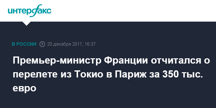 Москва. 20 декабря. INTERFAX.RU - Премьер-министр Франции Эдуар Филипп в среду объяснил, что потратил 350 тысяч евро из государственной казны на перелет из Токио в Париж из-за необходимости срочно вернуться на родину.