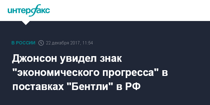 Москва. 22 декабря. INTERFAX.RU - Лондон отмечает прогресс в экономических отношениях с Россией: не менее 300 автомобилей Бентли было поставлено в РФ в текущем году, заявил глава британского МИД Борис Джонсон.
