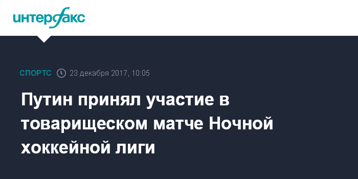 Путин принял участие в товарищеском матче Ночной хоккейной лиги