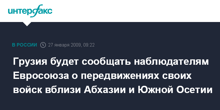 Грузия будет сообщать наблюдателям Евросоюза о передвижениях своих войск вблизи Абхазии и Южной Осетии