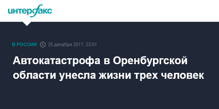 Автокатастрофа в Оренбургской области унесла жизни трех человек