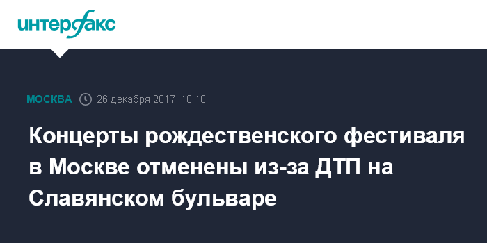 Концерты рождественского фестиваля в Москве отменены из-за ДТП на Славянском бульваре