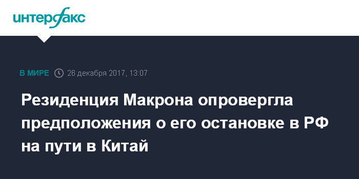 Ранее в СМИ появлялись предположения, в которых говорилось, что Макрон может в рамках поездки в Китай, которая запланирована на начало января 2018 года, посетить Россию. По данным французских СМИ, поездка запланирована на 8 января.