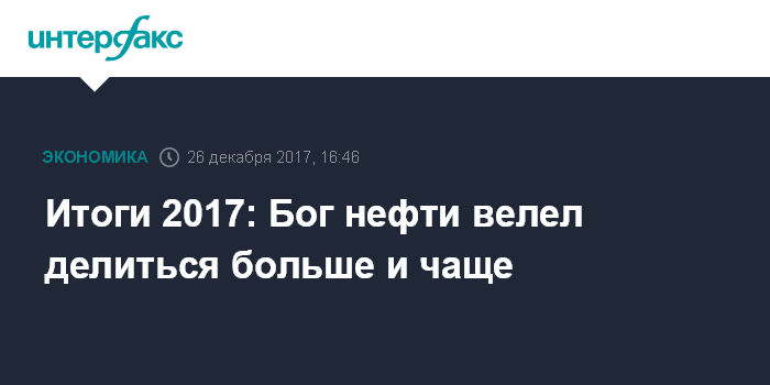 Итоги 2017: Бог нефти велел делиться больше и чаще