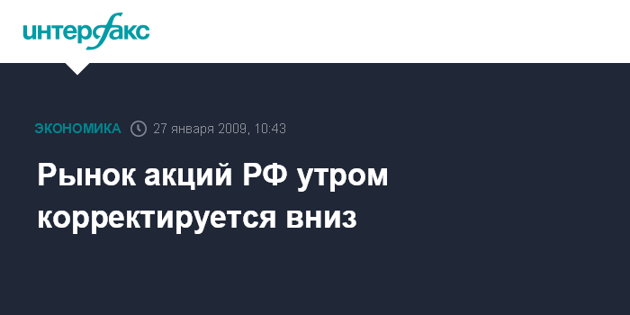Москва. 27 января. INTERFAX.RU - Рынок акций РФ утром во вторник начал корректироваться вниз после бурного ралли накануне, индекс ММВБ за минуту торгов опустился на 0,3%.