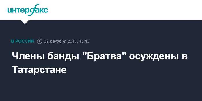 Москва. 29 декабря. INTERFAX.RU - Верховный суд Татарстана признал членов банды "Братва" виновными в серии тяжких преступлений и приговорил их к длительным срокам заключения.