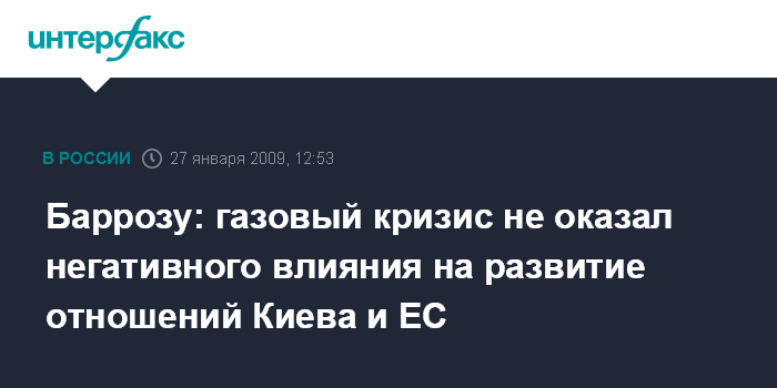 Москва. 27 января. INTERFAX.RU - Прошедший газовый кризис не оказал негативного влияния на развитие двусторонних отношений Киева и Брюсселя, заявляет президент Европейской комиссии Жозе Мануэль Баррозу.