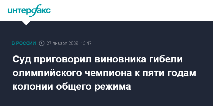 Cуд приговорил виновника гибели олимпийского чемпиона к пяти годам колонии общего режима