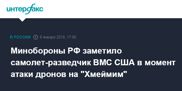 Минобороны РФ заметило самолет-разведчик ВМС США в момент атаки дронов на "Хмеймим"