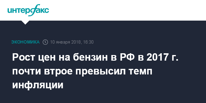 За весь 2017 год бензин подорожал на 7,3%, что выше темпов инфляции за аналогичный период почти в 3 раза (инфляция в минувшем году составила 2,5%).
