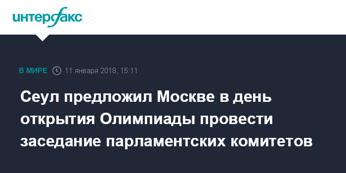 Сеул предложил Москве в день открытия Олимпиады провести заседание парламентских комитетов
