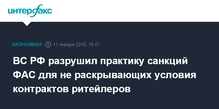 ВС РФ разрушил практику санкций ФАС для не раскрывающих условия контрактов ритейлеров