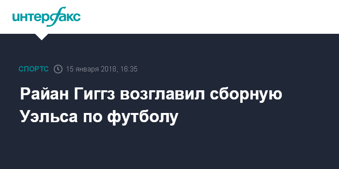 Москва. 15 января. INTERFAX.RU - Футбольная ассоциация Уэльса объявила о назначении Райана Гиггза в качестве главного тренера сборной страны.