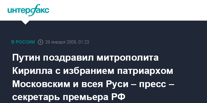 Путин поздравил митрополита Кирилла с избранием патриархом Московским и всея Руси – пресс – секретарь премьера РФ