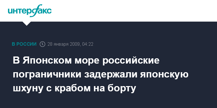 Владивосток. 28 января. ИНТЕРФАКС-ДАЛЬНИЙ ВОСТОК - Японская шхуна "Еси Мару-38" с крабом на борту задержана пограничниками Приморья в Японском море.