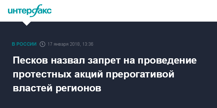 Песков назвал запрет на проведение протестных акций прерогативой властей регионов