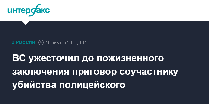 ВС ужесточил до пожизненного заключения приговор соучастнику убийства полицейского