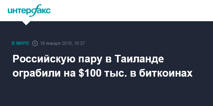 Российскую пару в Таиланде ограбили на $100 тыс. в биткоинах