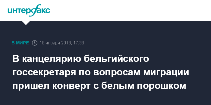 В канцелярию бельгийского госсекретаря по вопросам миграции пришел конверт с белым порошком